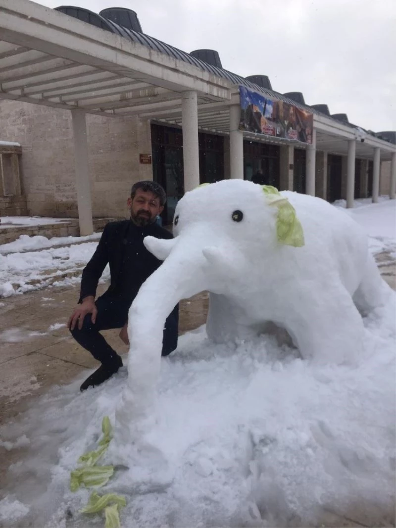 Kırşehir Ahi Çarşısında iş yeri olan esnaf kar yağışı ile birlikte kendini Ahi Külliyesi bahçesine atarak farklılık oluşturmak için kardan adam yerine kardan fil yaptı.