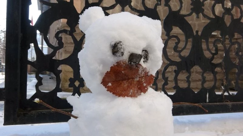 Ardahan’da dün etkili olan kar yağışı ile birlikte kent merkezi de beyaza büründü. Kar yağışı sonrası sembolik kardan adam yapan gençler ağaç yaprağından kardan adama maske yapıp taktılar. Pandemiye dikkat çekmek için yapraktan maske takan gençler, sosyal mesafe ve maske takılmasının önemini vurguladı.