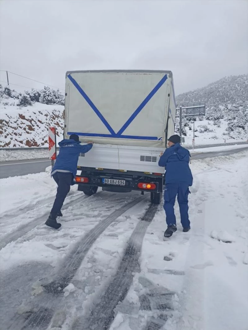 Kar kalınlığının 50 santimetreye ulaştığı bölgede yolda kalan vatandaşlara Akseki İlçe Jandarma Komutanlığı ekiplerince yardım edildi.