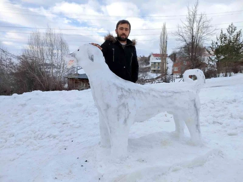 Sivas’ın Koyulhisar ilçesi Kızılelma köyünde kardan yapılan Sivas Kangal Köpeği ilgi odağı oldu.