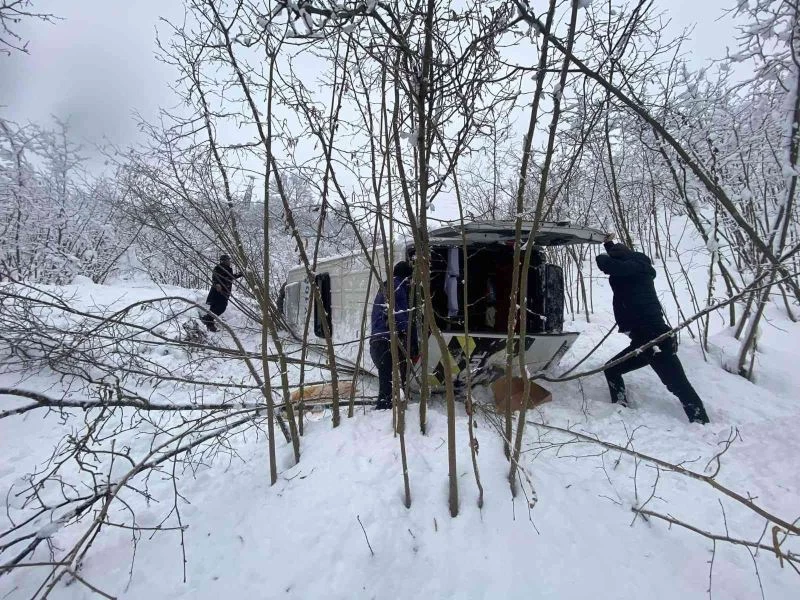 Kardan kayan minibüs fındık bahçesine uçtu: 4 yaralı