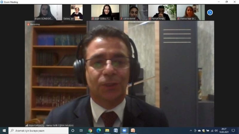 Türkiye ve Azerbaycan’daki öğretmenleri tanıştırmayı, eğitim ve öğretim şeklini tanımayı ve öğretim yöntemlerini örnek almayı, iki kardeş ülke öğretmenleri arasında işbirliği ve etkileşimin artırılmasını hedefleyen proje kapsamında gerçekleştirilen toplantı, Türkiye’den Büşra Gündoğdu, Azerbaycan’dan Şfq Celilova moderatörlüğünde yürütüldü. Toplantıya iki ülkenin bölge müdürleri de katıldı. Toplantıya katılan Hamur İlçe Milli Eğitim Müdürü Kaya Karakoç, iki ülkenin işbirliğinden ötürü duyduğu memnuniyeti dile getirdi. Toplantı, iki ülkenin öğretmenlerinin tanışması ve okullarının tanıtılmasının ardından sona erdi.
