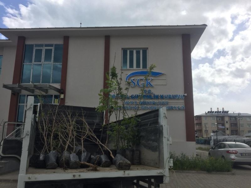 Van’ın Erciş ilçesinde yaşayan iş adamı Halis Bahçe, ebediyete intikal eden kardeşi Yakup Bahçe anısına Erciş Sosyal Güvenlik (SGK) İlçe Müdürlüğü bahçesine 200 adet fidan diktirdi.