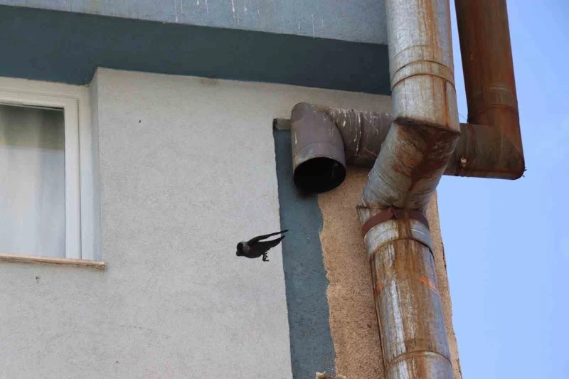 Karabulut sokakta esnaf olan Fırat Aydın, “Daha önce bu kargalar bu borunun içerisinde sıkışmışlardı biz kurtardık boruyu söküp çıkardık ama bunlar ısrarla yuva yapma niyetindeler. İlk defa borunun içerisine alttan yukarıya doğru girip çıkan karga görüyorum. Yuvalarını oraya yapmaya çalışıyorlar aşağıdan yukarı sorti atarak borunun içerisine giriyorlar, oraya çalı çırpı ne bulsalar taşıyorlar tabi yerlerde birçok pisliği de bırakıyorlar bizde temizliyoruz mecburen” dedi.