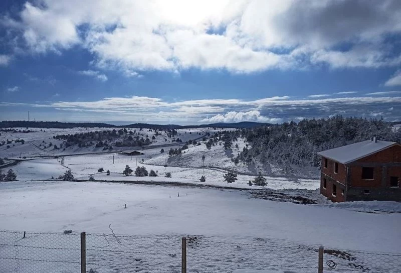 Kuvvetli yağışla birlikte hava sıcaklığının bir anda düştüğü Çorum’un Kargı ilçesinde yüksek kesimlerinde kar sürprizi yaşandı.