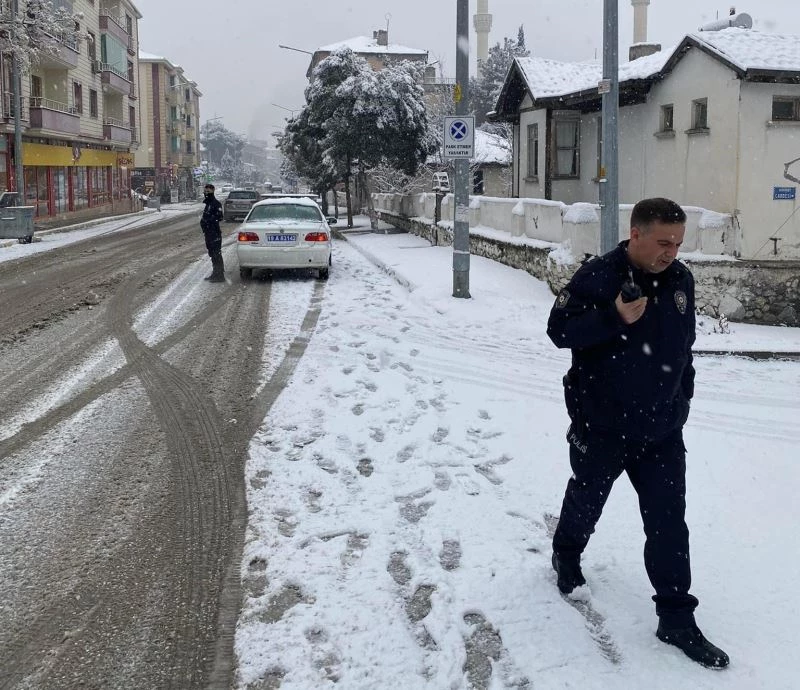 Yapılan açıklamada; ’’İlçemizde akşam saatlerinde başlayan kar yağışı etkisini sürdürüyor. İlçe Emniyet Amirliği ekipleri kış tedbirleri kapsamına yollarda gerekli güvenlik tedbirlerini alırken, belediye ekiplerimiz kar temizleme ve tuzlama çalışması yaptı’’ denildi.