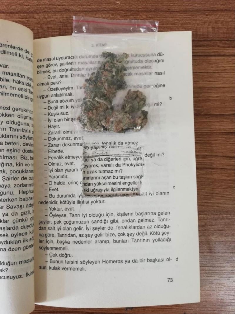 Operasyonda yapılan arama ve incelemelerde kargo paketinden çıkan bir kitabın orta bölümlerini keserek uyuşturucu yerleştirildiği tespit edildi. Kitabın ortasında kare şeklinde oluşturulan bölmeden 3 gram esrar çıktı. Y.S.O. isimli şahıs gözaltına alınarak olayla ilgili soruşturma başlatıldı.