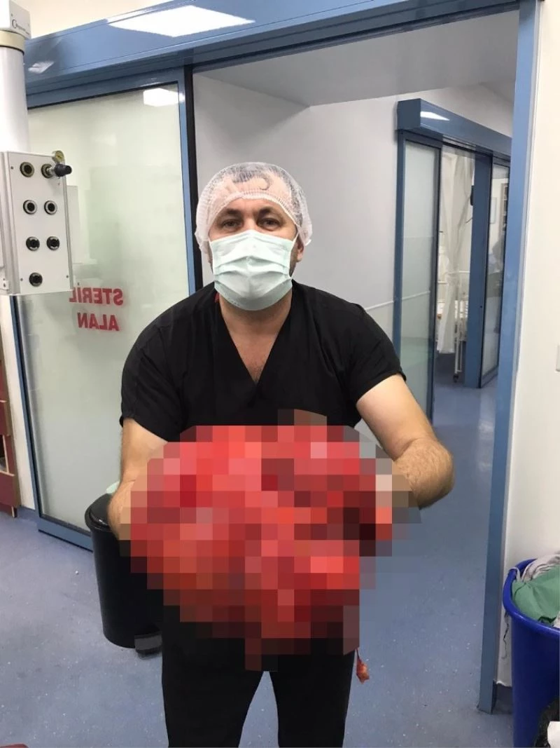 Karın şişliğiyle gittiği hastanede karnından 14 kilogram kitle çıktı