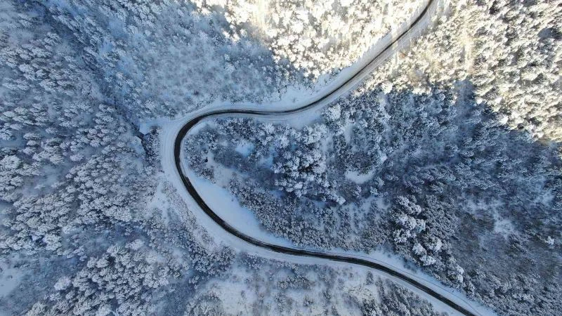 Şarkılara konu olan Ilgaz Dağı’nda, kar yağışı ile birlikte kartpostallık manzaralar ortaya çıktı. Beyaz örtüyle kaplanan Ilgaz Dağı, havadan görüntülendi.