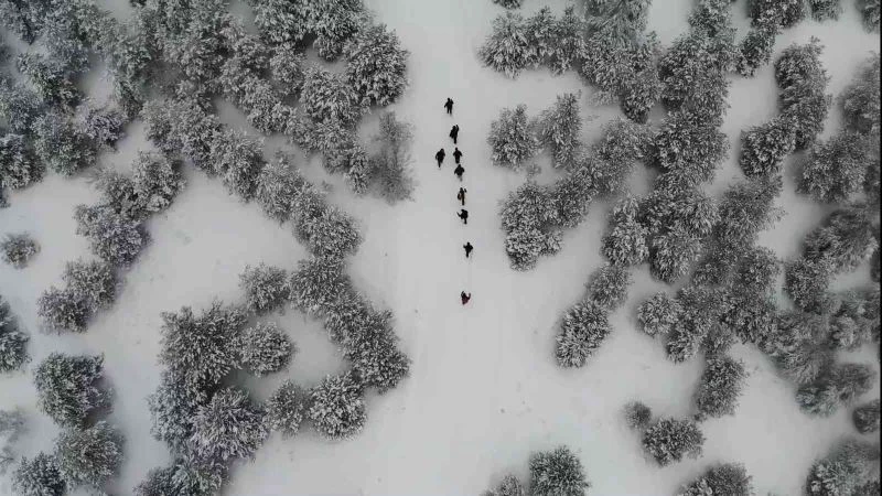 Kırıkkale’de bir grup vatandaş, karla kapanan kent ormanında doğa yürüyüşü yaparak manzaranın keyfini çıkardı. Kar ile bütünleşen çam ağaçlarının sunduğu güzellik drone ile görüntülendi.