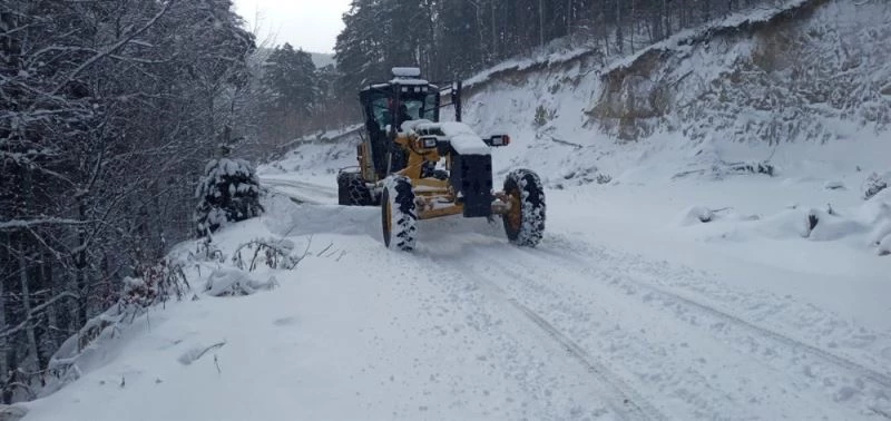 Kütahya İl Özel İdaresi karla mücadele ekipleri kapanan köy yollarını açmak için çalışmalara başladı.