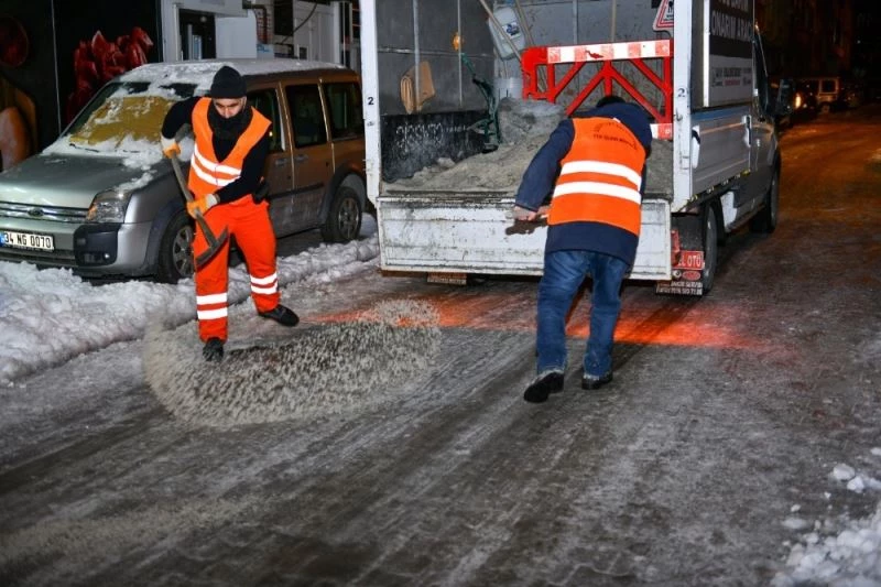 Karla mücadele ekiplerinin çalışmaları gece boyunca sürdü