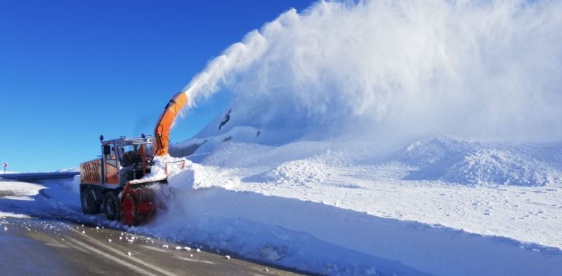 Kar kalınlığının 2 metreyi aştığı bölgede kar savurma araçlarıyla çalışma yapan kar temleri zor şartlarda 7-24 aralıksız görev yapıyorlar.