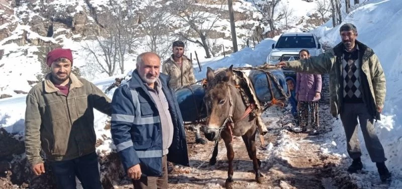 Karla mücadelede kesintisiz hizmet için katır sırtında mazot taşıdılar