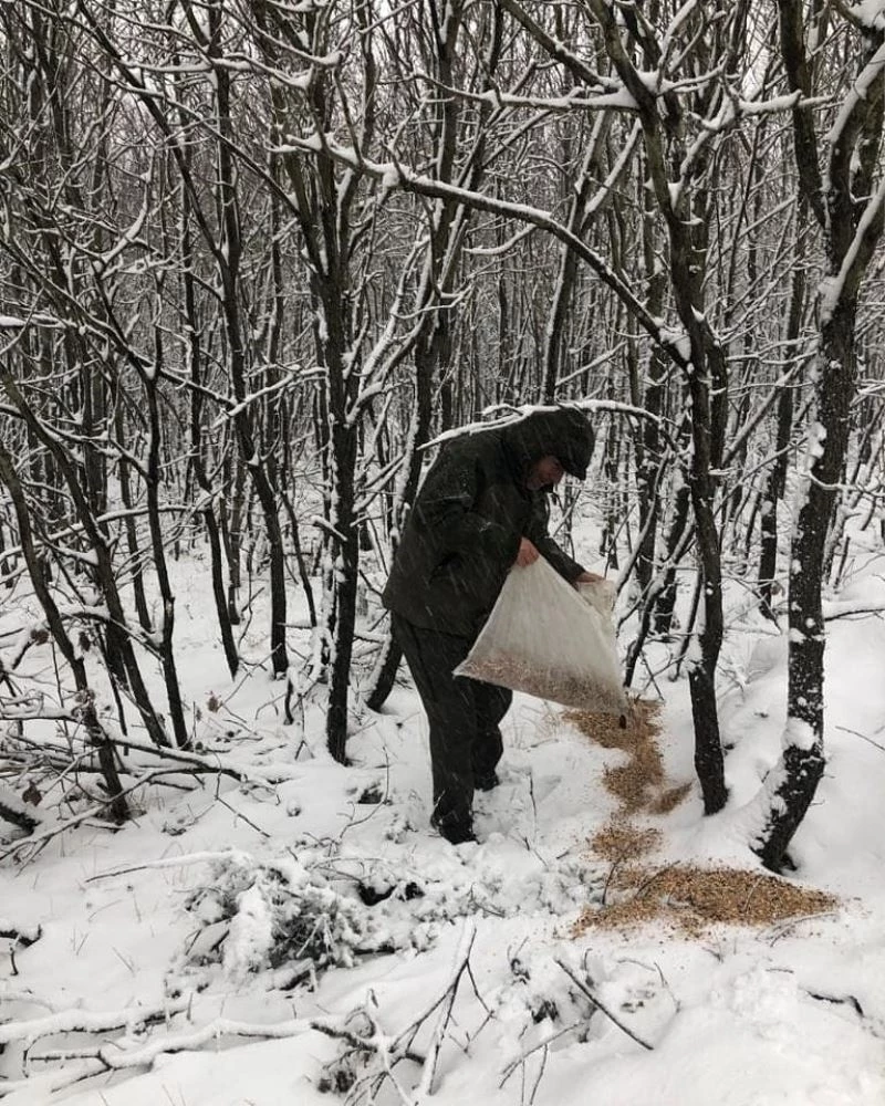 Karlı günlerde yaban hayvanları için doğaya 200 kilogram yem bırakıldı