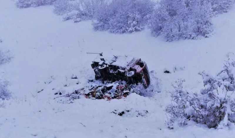 Elazığ ile Bingöl arasında karlı yoldan çıkan kamyonet şarampole devrildi, sürücü yaralandı.