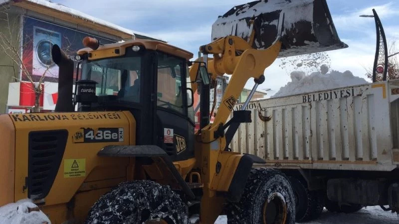 Bingöl’ün Karlıova ilçesinde son bir haftada etkili olan kar nedeniyle, belediye ekipleri yoğun mesai yaparak karları kamyon kamyon ilçe dışına taşıyor.