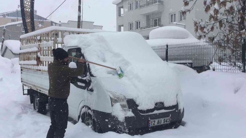 Bingöl’ün yüksek rakımlı Karlıova ilçesinde yaklaşık 2 aydır etkisini sürdüren kar, hayatı olumsuz etkileyeme devam ediyor. Dün gece saatlerinde ilçede yeniden etkisini gösteren kar, nedeniyle araçların birçoğu kara gömüldü. Sabah işyerini açan esnaf kar temizliği yaparken, sürücüler de araçlarının üzerindeki karı attı. O sürücülerden biri olan Ali Bulki, her gün aracının üstündeki karı atmaktan dolayı sitem ederek, "Her gün her gün kar temizliyoruz. Sabah kalkıyoruz kar, ertesi gün kalkıyoruz yine kar" dedi.