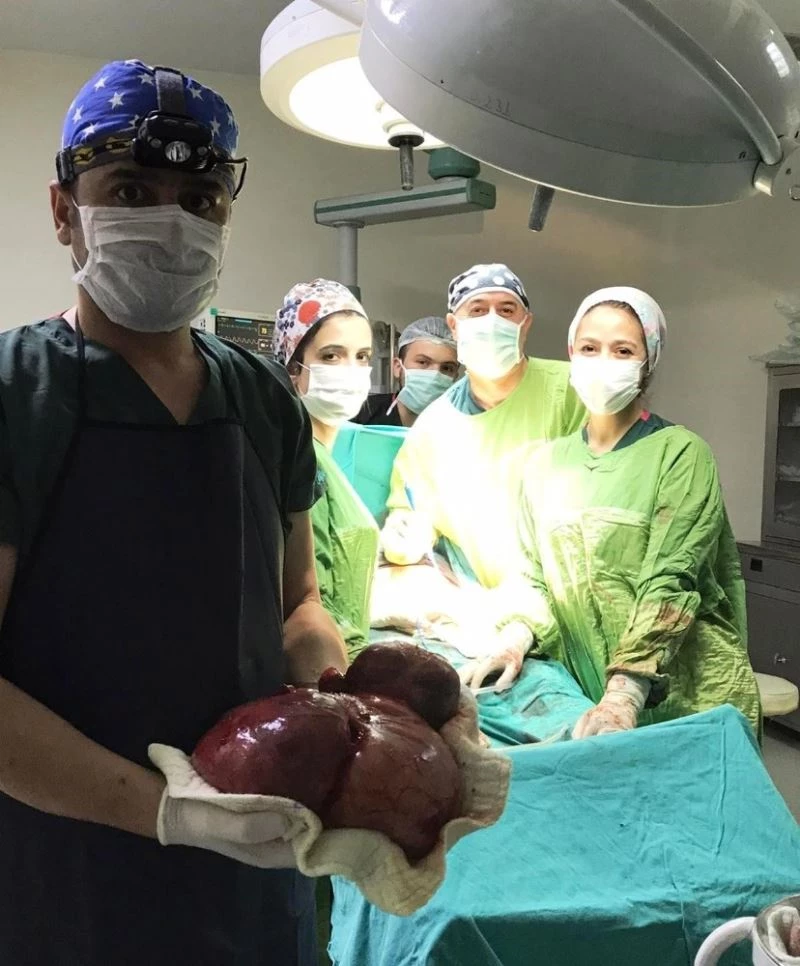 Bitlis’in Tatvan ilçesindeki Özel Tatvan Can Hastanesinde yapılan başarı ameliyatla bir kadının karnından 5 kilo ağırlığında tümör çıkarıldı.