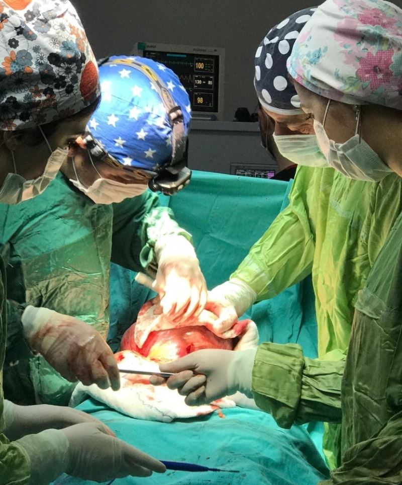 Gerçekleştirilen başarılı operasyon ile ilgili bilgi veren Kadın Hastalıkları, Doğum ve Tüp Bebek Uzmanı Op. Dr. Veysel Toprak, N.A.’nın karnından 5 kilogramlık bir tümör kitlesi çıkarıldığını söyledi. Başarılı ameliyat neticesinde hastanın sağlığına kavuştuğunu kaydeden Op. Dr. Toprak, “Kadınlarda pelvik kitle kadın üreme organlarında iyi huylu kist veya kötü huylu tümörler şeklinde ciddi sonuçlar doğurabilen oluşumlardır. Örneğin rahimde (uterus) miyom ve over kistleri kadın üreme sisteminde pelvik kitlelere örnek olarak gösterilebilir. Pelvik inflamatuar hastalık olarak bilinen uterus, over ve fallop tüplerinin enfeksiyonları da karında şişmeye neden olarak pelvik kitle imajı oluşturabilir. Erkek ve kadınlarda pelvik kitle alt karın bölgesindeki diğer organlara ait patolojilerin sonucu da gelişebilir. Yaygın bir barsak tıkanıklığı veya iltihabı ya da sindirim sistemi tümörleri de pelvik kitle nedeni olabilir. Bizim hastamızda da rahimden kaynaklanan dejenere myomu vardı. Nefes darlığı, karın ağrısı, karında hızlı büyüme sonrası yapılan muayenesinde karnı dolduran kitle tespit edilerek tümör markerları ve diğer testler ile operasyon hazırlığı tamamlandı. Çevre organlara yapışıktı, yaklaşık 2 saat süren bir ameliyattan sonra hastamızın karnından 5 kilogram ağırlığındaki kitleyi çıkardık. Hastamız sağlığına kavuşmuş oldu” diye konuştu.