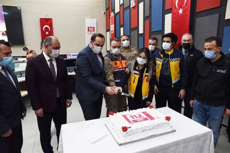 3 Şubat 2021 tarihinde 110 İtfaiye, 112 Sıhhi İmdat, 155 Polis İmdat ve 156 Jandarma acil çağrı numaralarının tek bir numara ve tek bir merkez olarak birleşmesiyle faaliyete geçen 112 Acil Çağrı Merkezi Müdürlüğü 1’inci yıldönümünü pasta keserek kutladı.