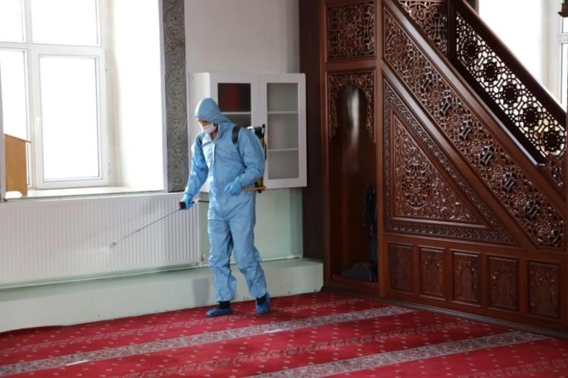 Belediye Sağlık İşleri Müdürlüğü ekipleri, Mart ayı içinde alınan Covid-19 tedbirleri kapsamında ibadete ara veren ve bugün Cuma Namazı ile birlikte kapılarını açan camilerde dezenfekte çalışması yaptı. İki ayrı ekibin yürüttüğü çalışmalar sonrasında camiler hizmete hazır hale getirildi.