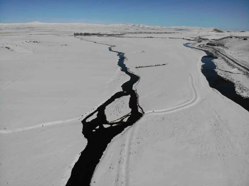 Kars Çayı’nın oluşturduğu menderesler ve etrafındaki ikiz dağların karlar altında adeta beyaz gelinlik giymesi, kartpostallık görüntüler ortaya çıkardı.