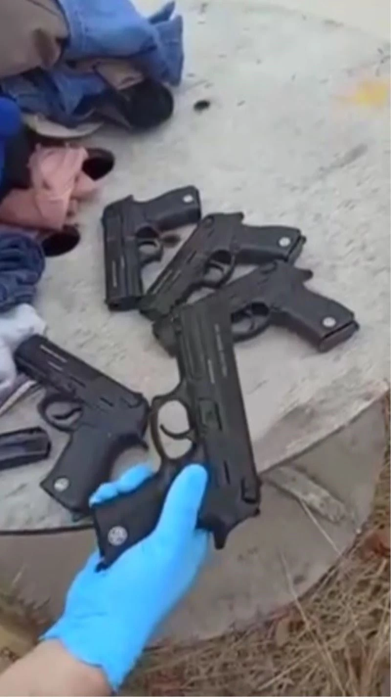Kars polisinin düzenlediği operasyonda 5 ruhsatsız silah ele geçirildi. Polis, düzenli bir şekilde çorapların içerisine saklanmış silahları karton kutudan çıkardı.