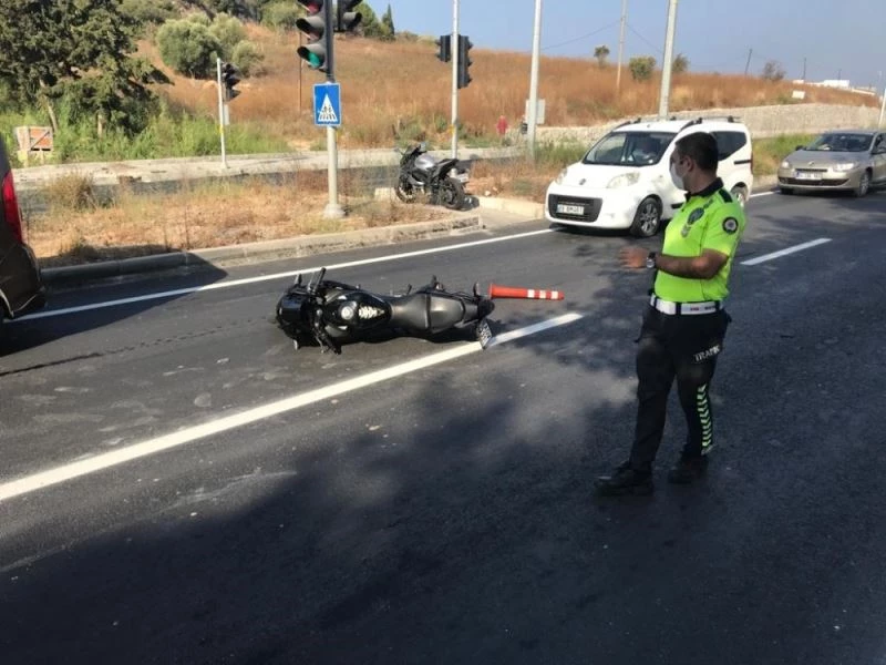 Aydın’ın Kuşadası ilçesinde karşıdan karşıya geçmek isteyen anne kıza motosiklet çarptı, kazada 1’i çocuk 2 kişi yaralandı.