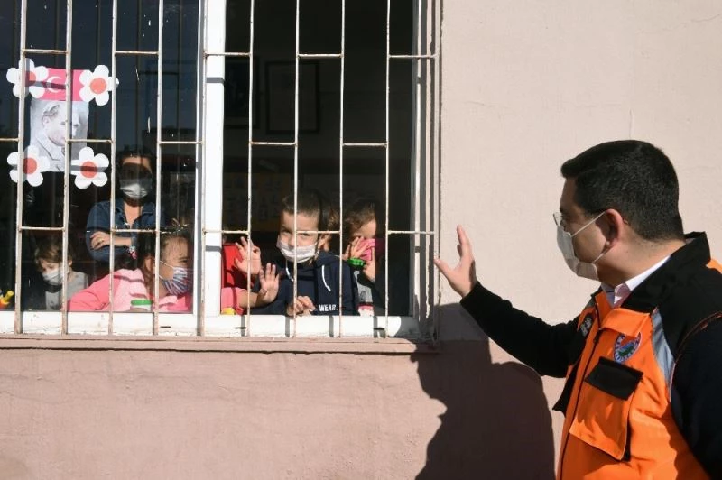 İnşaatla ilgili Başkan Yardımcısı Sebahat Adanır’dan bilgi alan Tütüncü, pencereden kendisine el sallayan okulun ana sınıfı çocuklarıyla maske ve sosyal mesafe kurallarına uyarak, sohbet etti. Çocuklara, boyama kitabı hediye eden Başkan Tütüncü, açıklamasında, Karşıyaka Mahallesi’nde yaptıkları hizmetlere de değinerek, şunları söyledi: