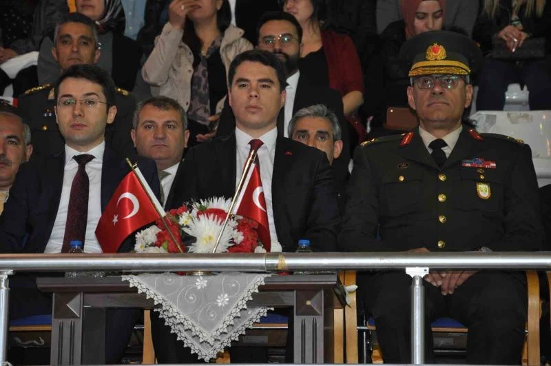 Tören, Hükümet Konağı önündeki Atatürk Anıtı’na Milli Eğitim Müdürlüğü’nün çelengi konuldu. Ardından İsmail Aytemiz Spor ve Sergi Sarayı’na geçildi. Buradaki tören saygı duruşu ve İstiklal Marşı’nın okunmasıyla başladı.