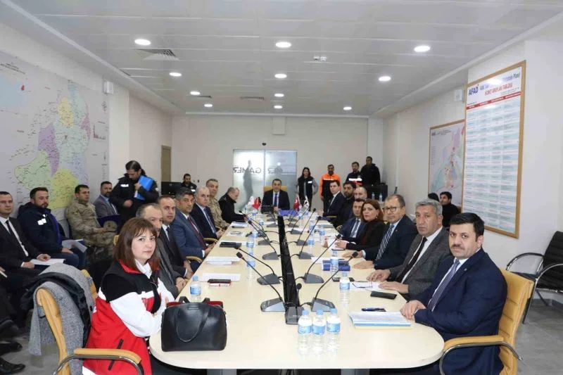 AFAD Müdürlüğü Toplantı Salonu’nda Vali/Belediye Başkan vekili Türker Öksüz, başkanlığında düzenlenen toplantıya, İl Emniyet Müdürü Yavuz Sağdıç, İl Jandarma Komutanı Albay Hıdır Ayçiçek ve ilgili kurum müdürleri katıldı.