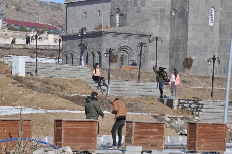 Kars’ta kışın ortasında bahar havası yaşanıyor. Güneşi gören vatandaşlar kendilerini sokağa attı.