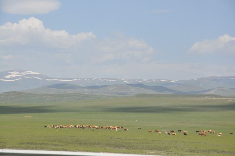 Tarım ve hayvancılıkta Türkiye’nin en önemli illerinden birisi olan Kars’ta havaların ısınmasıyla birlikte büyükbaş ve küçükbaş hayvanlar meralara çıktı.
