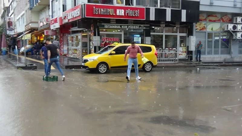 Kars’ta güneşli ve sıcak hava yerini yağışlı havaya bıraktı. Kısa süreli dolu yağışının ardından etkili olan sağanak yağmur cadde ve sokakları sular altında bıraktı. Yağmura hazırlıksız yakalanan vatandaşlar ise zor anlar yaşadı. Duraklar ve iş yerlerinin önlerine sığınan vatandaşlar, adeta nehre dönen caddelerde yolun karşısına geçmekte zorlandı.