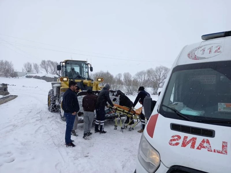 Kars’ta hasta bir kişi iş makinesiyle ambulansa yetiştirildi