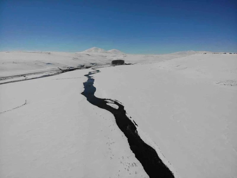 Kars’ta kar altındaki menderesler büyülüyor