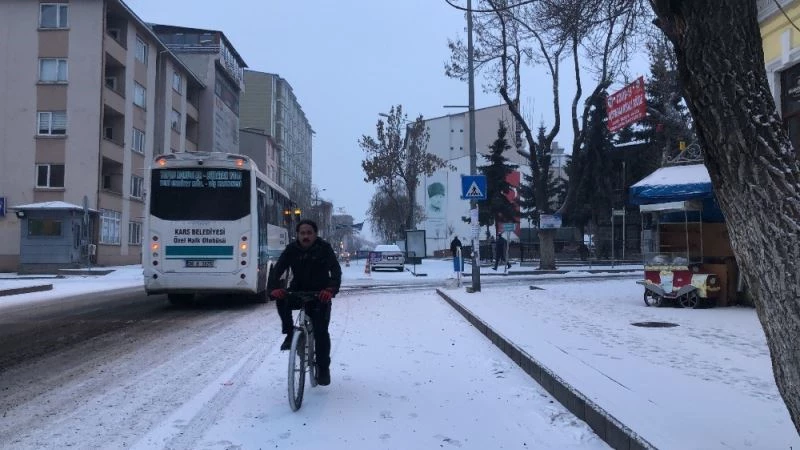 Kentte sabah saatlerinde başlayan kar yağışı kısa sürede etrafı beyaza bürüdü. Güne karla başlayan vatandaşlar Kars’a karın yakıştığını belirttiler.