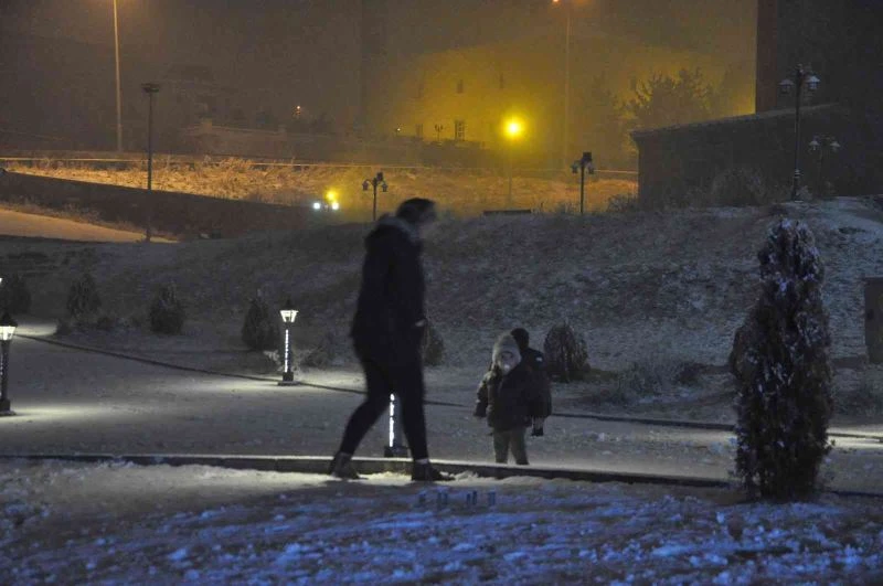 Kars’ta son günlerde etkili olan soğuk hava akşam saatlerinde yerini kar yağışına bıraktı. Kar yağışı bir anda etrafı beyaza bürüdü.