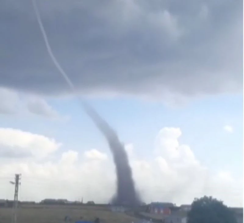 Cep telefonuyla kaydedilen görüntülerde hortumun oluşu ve köylülerin konuşmaları yer alıyor.