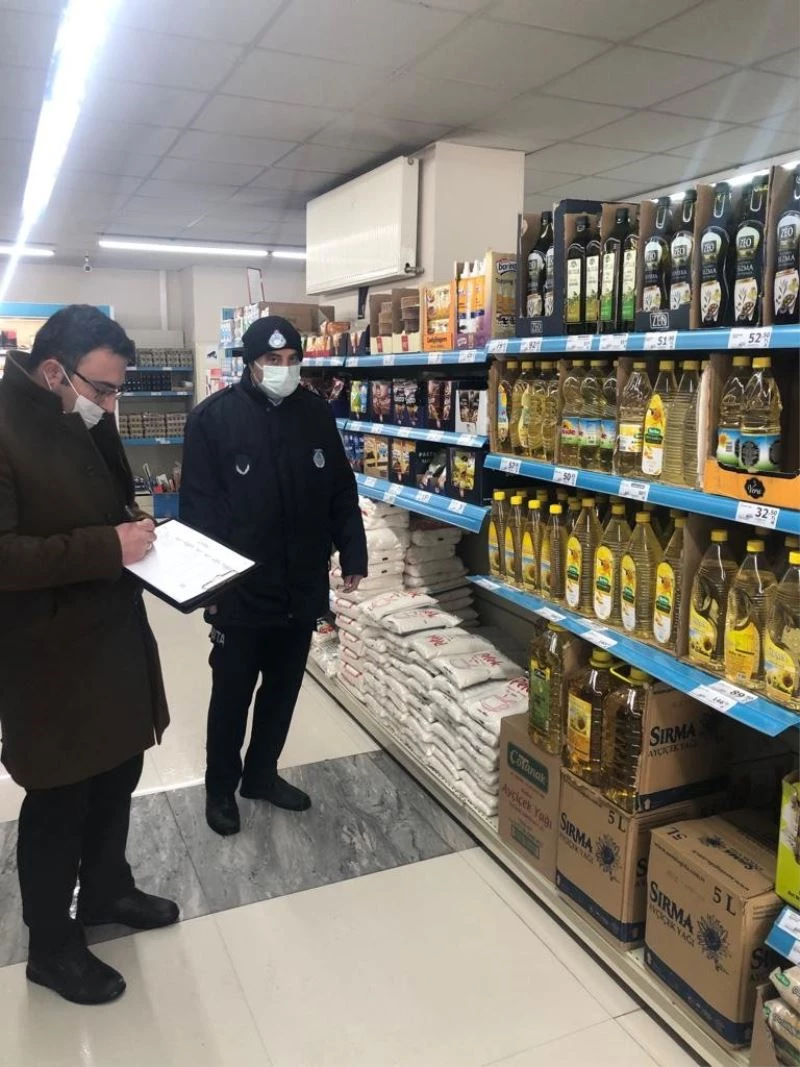 Ekipler başta şeker ve sıvıyağ olmak üzere fahiş fiyat, stokçuluk, fiyat etiketi gibi konularda zincir ve yerel marketler ile toptancılara yönelik vatandaşların mağduriyetinin önlenmesi için uygulama ve denetimlerine ara vermeden devam ediyor.