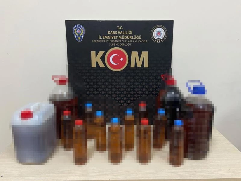 Kars’ta KOM ekipleri tekel bayilerine operasyon düzenledi. Düzenlenen operasyonda 30 litre sahte içki ile bandrolsüz 100 kilo kıyılmış tütün ve çok sayıda kaçak sigara ele geçirildi.
