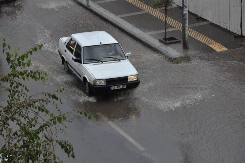 Kars’ta öğle saatlerinde etkili olanak sağanak yağmur bir anda cadde sokakları sular altında bıraktı.