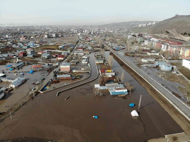 Kars’ta sel felaketi devam ederken, kent merkezinde sular altında kalan evler havadan görüntülendi.