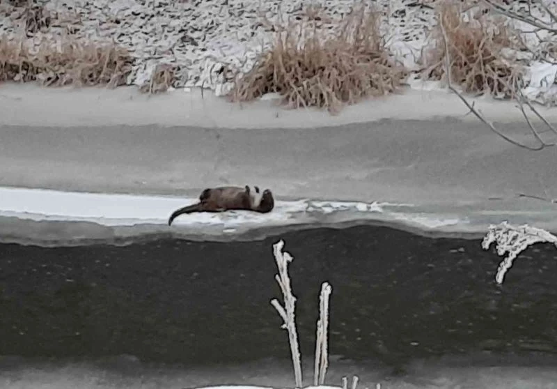 Nesli tükenme tehlikesi altında olan su samurunun Kars Çayı’nda yiyecek avı ve kar banyosu renkli görüntüler ortaya çıkarırken, izlendiğini fark eden su samuru birden gözlerden kayboldu.