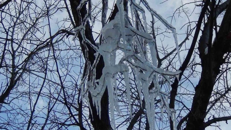 Kars’ta termometreler eski 16 dereceyi gösterdi. Soğuktan kayalıklardan buz şelalesi oluştu. Akaçların dalları buz tuttu.