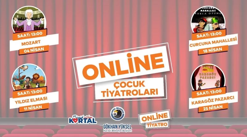 Nisan ayı online çocuk tiyatroları kapsamında ise; Ada Sanat Tiyatrosu’nun Mozart, Labirent Tiyatrosu’nun Yıldız Elması, Gölgeler Tiyatrosu’nun Curcuna Mahallesi, Tiyatro Nekte’nin Karagöz Pazarcı isimli tiyatro oyunu minik seyircileri ile buluşacak.