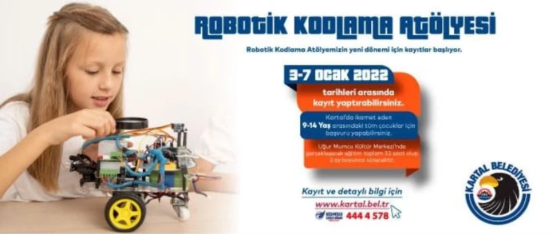 Geleceğin dili olarak adlandırılan robotik kodlama eğitimleri için başvurular 3-7 Ocak 2022 tarihleri arasında Kartal Belediyesi’nin internet sitesinden yapılabilecek.