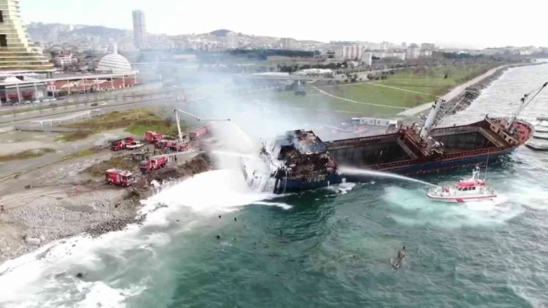 Öte yandan, yanının gemide bıraktığı tahribat ve devam eden soğutma çalışmaları drone ile havadan görüntülendi.