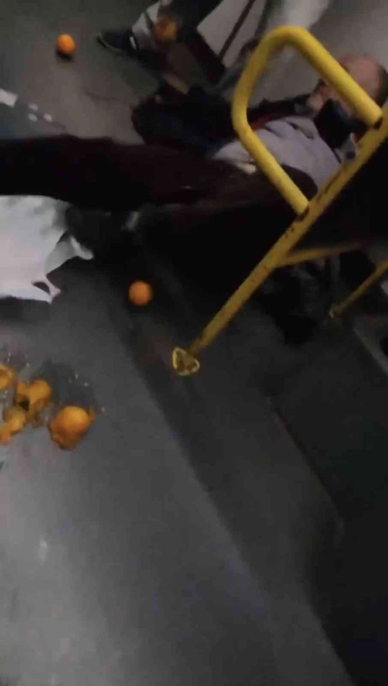 Olay, saat 15.00 sıralarında Kartal Uğur Mumcu’da seyir halindeki otobüste meydana geldi. İddiaya göre, yaşlı iki adam henüz bilinmeyen bir nedenle tartışmaya başladı. Hararetlenen tartışmada şahıslar birbirlerine yumruk savurdu. Aldığı darbe sonucu yere düşen yaşlı adamlardan birinin, elinde taşıdığı meyve dolu poşet yere savruldu.